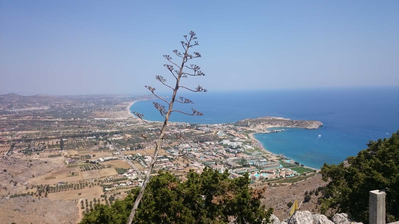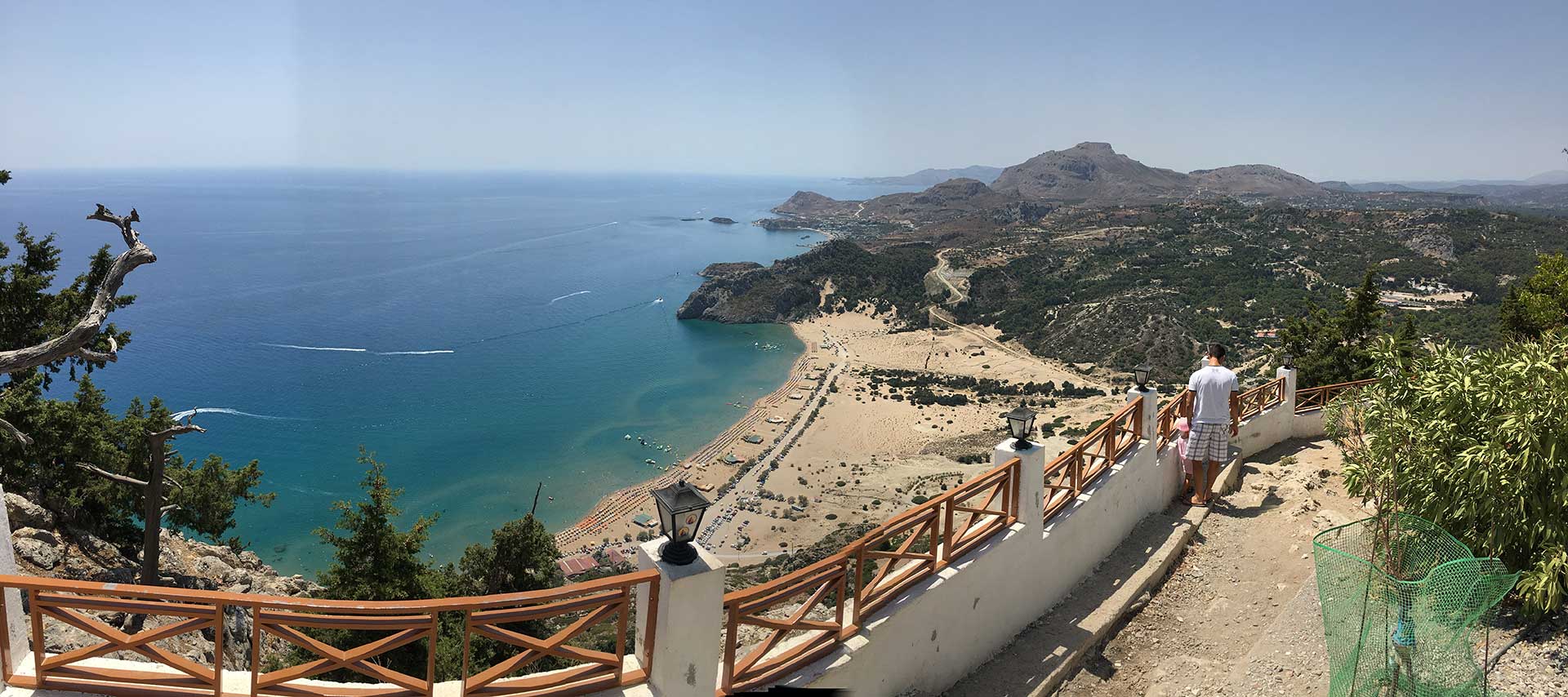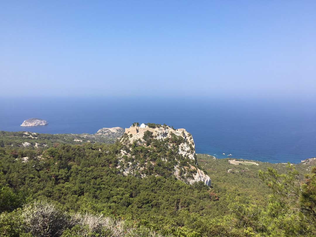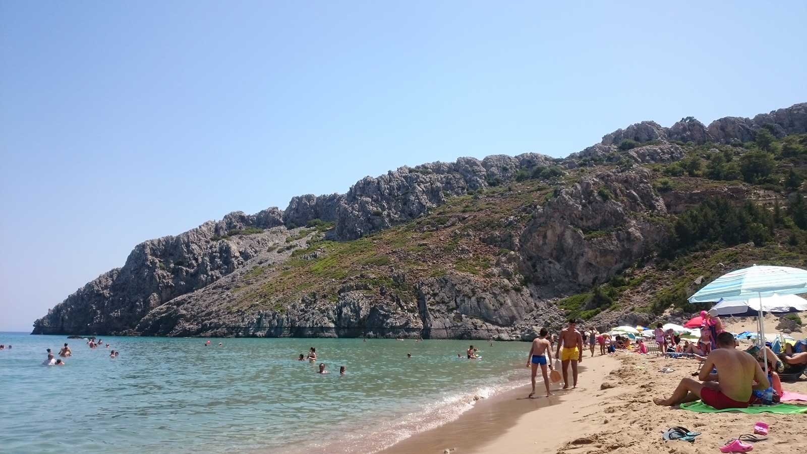 Toliau pavažiavę kalnų keliuku stabtelime prie alpių stiliaus viežbutuko, kuris įsikūręs ant kalno su nuostabia panorama.Šokam į mašiną ir važiuojame toliau.. Siaurais keliukais nusileidžiame nuo kalnų ir pasiekiame kitą salos pusę. Kelias veda palei jūrą, vaizdai nuostabūs. Tolimesnė mūsų stotelė tai – Fourni Beach. Nedidelis akmenuotas paplūdimys. Iš pradžių šiek tiek abejojau ar verta važiuoti, nes labiau norėjosi smėliuko, tačiau visiškai nesigailėjome. Apsoliuti ramybės oazė. Kai atvažiavome, visame paplūdimyje buvo tik du žmonės, o paėjus šiek tiek tolėliau iš vis nieko nesimatė. Išsimaudome, užkandame ir vykstame toliau. Vaizdai tik gražėja. Pakeliui stabtelime prie apgriuvusios pilies, tačiau 12val. dienos saulės atokaitoje į užmirštos pilies griuvėsius eiti nebelieka noro ir nusprendžiam važiuoti toliau. O toliau mūsų laukia garsiausias Rodo salos paplūdimys – Parasonisi. Tai platus, smėlėtas iškišulys jungiantis viduržemio ir egėjo jūras. Čia yra burlentininkų ir kaitistų rojus, nes visuomet pučia stiprūs vėjai, o bangos džiugina ir visus likusius poilsiautojus. Tai turbūt vienintelė vieta Rodo saloje, kur nėra karšta. Čia praleidžiame kelias valandas.. Grįždami atgal nusprendžiame patikrinti “Moni Thari Monastery” vienuolyną. Nežinau ar navigacija mus vedė geriausiu keliu, tačiau vingiuojant siauru keliuku ir nesutinkant jokios civilizacijos jau galvojome, kad reikia suktis atgal. Tačiau atvykome, eikštelė didžiausia ir nei vieno žmogaus, tik prie vartų stovintis sargas. Pasivaikštome ir važiuojame link namų. Pakeliui stabtelime ant kalno, prie lindos miestelio, nuo kurio atsiveria graži panorama į Lindos akropolį. Pasigėrim vaizdais ir grįžtam namo. Trumpai pailsim, gražinam automobilį ir praleidžiam paskutinį mūsų vakarą miestelio centre.