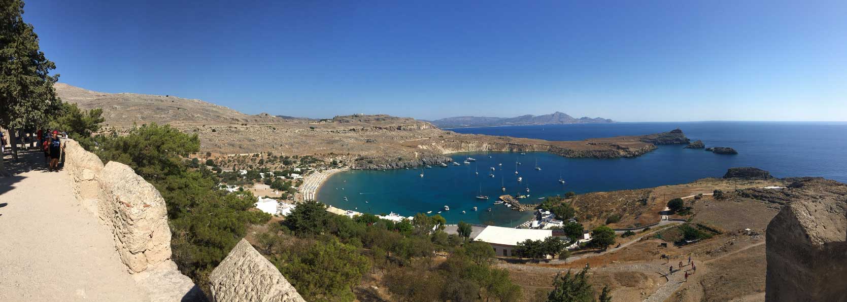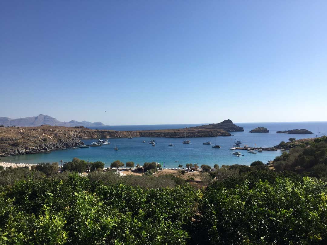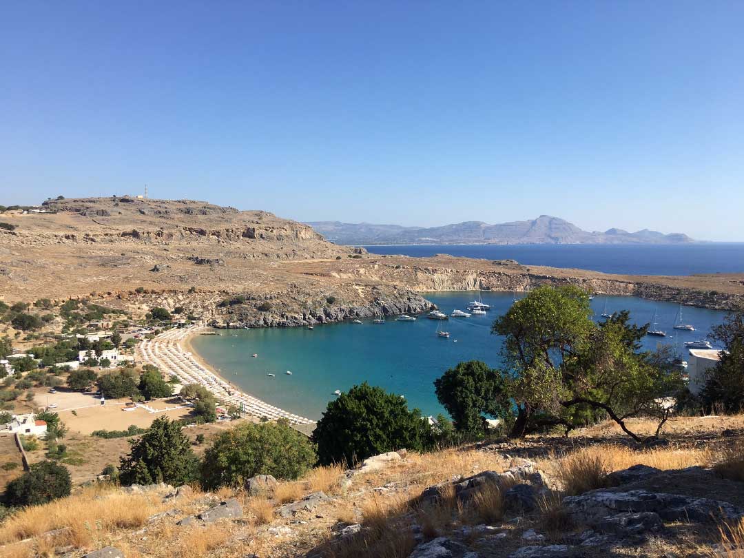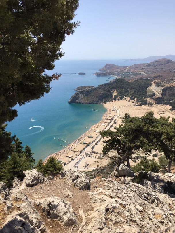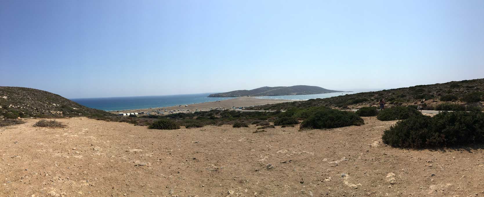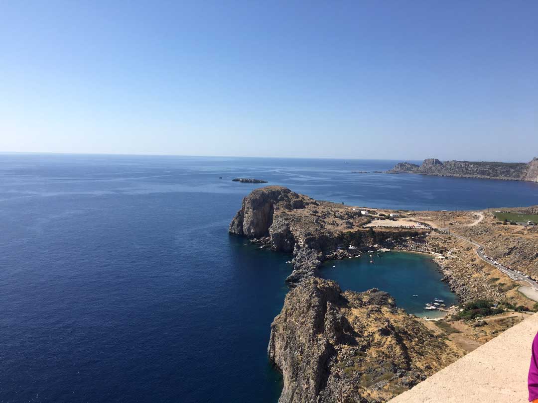 Toliau pavažiavę kalnų keliuku stabtelime prie alpių stiliaus viežbutuko, kuris įsikūręs ant kalno su nuostabia panorama.Šokam į mašiną ir važiuojame toliau.. Siaurais keliukais nusileidžiame nuo kalnų ir pasiekiame kitą salos pusę. Kelias veda palei jūrą, vaizdai nuostabūs. Tolimesnė mūsų stotelė tai – Fourni Beach. Nedidelis akmenuotas paplūdimys. Iš pradžių šiek tiek abejojau ar verta važiuoti, nes labiau norėjosi smėliuko, tačiau visiškai nesigailėjome. Apsoliuti ramybės oazė. Kai atvažiavome, visame paplūdimyje buvo tik du žmonės, o paėjus šiek tiek tolėliau iš vis nieko nesimatė. Išsimaudome, užkandame ir vykstame toliau. Vaizdai tik gražėja. Pakeliui stabtelime prie apgriuvusios pilies, tačiau 12val. dienos saulės atokaitoje į užmirštos pilies griuvėsius eiti nebelieka noro ir nusprendžiam važiuoti toliau. O toliau mūsų laukia garsiausias Rodo salos paplūdimys – Parasonisi. Tai platus, smėlėtas iškišulys jungiantis viduržemio ir egėjo jūras. Čia yra burlentininkų ir kaitistų rojus, nes visuomet pučia stiprūs vėjai, o bangos džiugina ir visus likusius poilsiautojus. Tai turbūt vienintelė vieta Rodo saloje, kur nėra karšta. Čia praleidžiame kelias valandas.. Grįždami atgal nusprendžiame patikrinti “Moni Thari Monastery” vienuolyną. Nežinau ar navigacija mus vedė geriausiu keliu, tačiau vingiuojant siauru keliuku ir nesutinkant jokios civilizacijos jau galvojome, kad reikia suktis atgal. Tačiau atvykome, eikštelė didžiausia ir nei vieno žmogaus, tik prie vartų stovintis sargas. Pasivaikštome ir važiuojame link namų. Pakeliui stabtelime ant kalno, prie lindos miestelio, nuo kurio atsiveria graži panorama į Lindos akropolį. Pasigėrim vaizdais ir grįžtam namo. Trumpai pailsim, gražinam automobilį ir praleidžiam paskutinį mūsų vakarą miestelio centre.