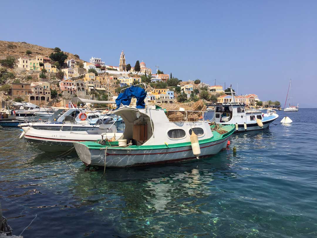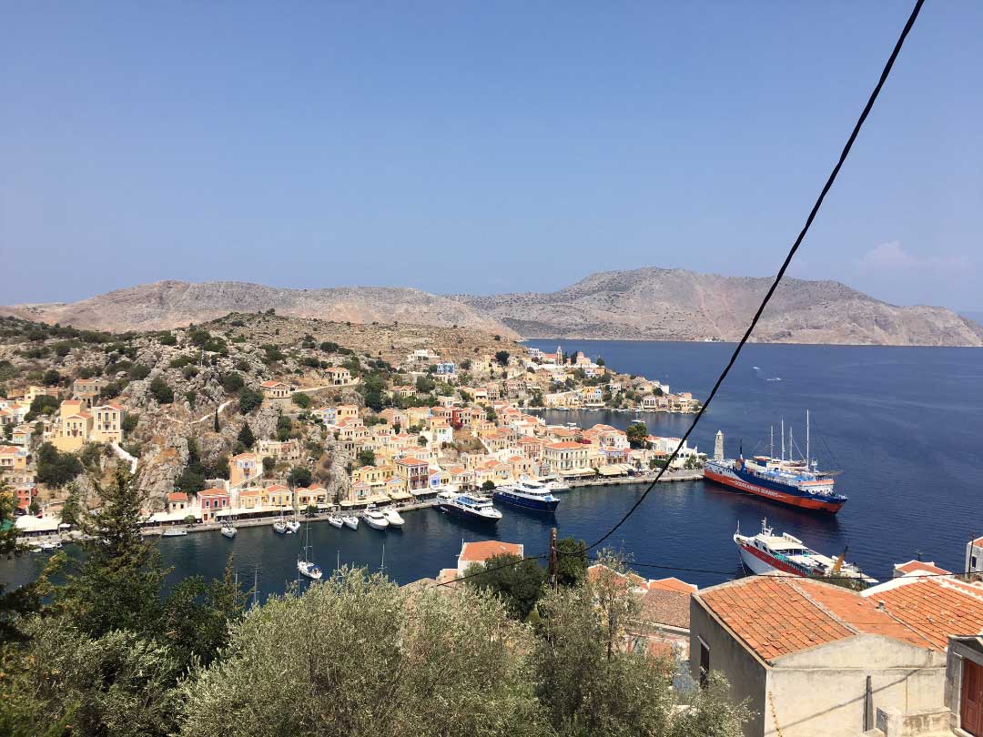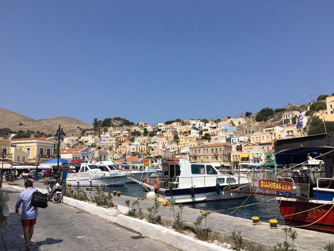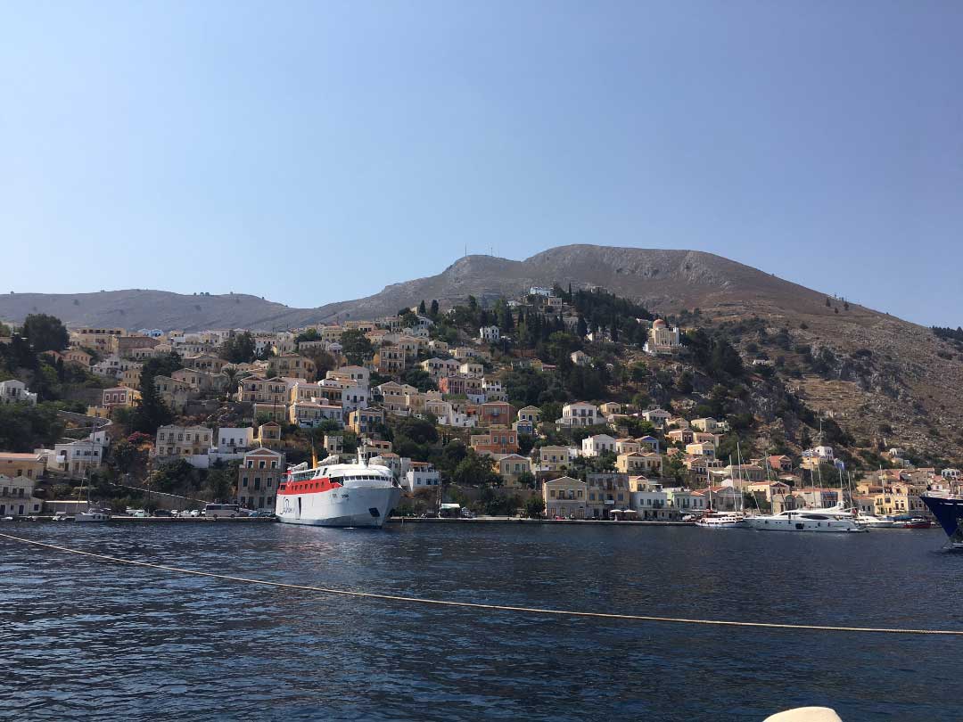 Šeštoji diena. Keliamės anksti, nes po 8:20 turi atvažiuoti autobusiukas mus paimti. Ekskursijų pardavėja sakė, kad jei vairuotojas vėluos, nesijaudint, vistiek atvažiuos paimti. Tai mes ir nesijaudinam, daug maž po 10 minučių atvažiuoja apypilnis mikriukas. Iškart apsidžiaugiu, kad mes vieni iš paskutinių keleivių – tai reiškia, kad nereikės važinėti ratais kvadratais ir rinkti kitų keleivių. Keliose vietose stabtelim paimti paskutinių keleivių, o poto tiesiai į Rodo uostą. Mikriukas priveža prie pat laivo ir paduoda įlipimo korteles. Keltas gana nemažas – plukdo tiek pieščiuosius tiek automobilius. Viduje yra vienas restoranų aukštas su dideliais minkštasuoliais. Ten visi keleiviai ir susėda. Palydime akimis Rodo miestą ir po geros valandėlės pradedame matyti salų kontūrus. Viena iš salų – tai Symi sala. Vietiniai graikai sakė, kad Rodo saloje dar ne taip karšta ir kad Symi saloje bus žymiai karščiau. Ir jie nemelavo – Symi miestelis yra įsikūręs įlankėlėje. O visi namai lipa aukštyn stačiais šlaitais. Todėl visame miestelyje gaunasi saulės atokaita ir vėjas nelabai prapučia. Taigi išlipę iš laivo praeiname pagrindine uosto gatve, pasivaikštome siaurais ir stačiais pėščiųjų takais ir užkandame vietinėje tavernoje. Symi saloje būtina paragauti vietinių “Symi” krevečių. Tai mažos krevetės, kurios valgomos kartu su lukštu. Skonis mūsų nenustebino, tačiau visi teigė, jog privalome paragauti. Taigi “pliusą” užsidėjome! Po pietų nusprendėme nueiti į kitą uosto pusę, o paėjus dar kiek tolėliau, yra įsikūręs Symi pliažas. Smėlio čia nėra, tik akmenukai. Iš turistų mimikų galima pasakyti, kuris brenda basas. Tačiau vanduo čia dar skaidresnis. Atrodo, kad laiveliai kabotų ore.. Prie paplūdimio yra įsikūręs baras, kurio vieną sieną skalauja jūros vanduo. Čia galima prasedėti visą dieną ir nepajusti kaip greitai prabėga laikas. O mūsų 5 valandos Symi saloje jau išgaravo ir teko skubėti atgal į keltą. Grįžus į Rodą mūsų jau laukia autobusiukas, kuris parveža namo.