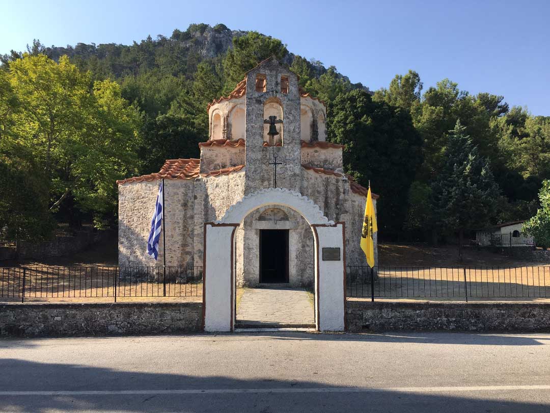 Septintoji diena. Keliamės anksti, nes juk norime apvažiuoti kuo daugiau. Iš pajūrio sukame į salos vidurį ir po truputėli kylame aukštyn siauru vingiuotu keliu. Pirmasis mūsų sustojimas ties “Agios Nikolaos Foundoukli” – tai 15to amžiaus bizantiško stiliaus bažnytėlė. Nors iš išorės ji atrodo nebeveikianti ir šiek tiek apgriuvus, tačiau viduje gerai išsilaikiusios senovinės freskos.