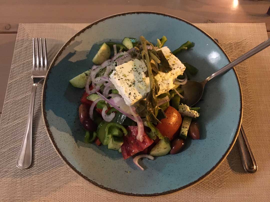 “Tsampika” papludimys – labai gražus, vien smėlis, vanduo labai šiltas. Čia pat yra baras su gaivinančiais kokteiliais. Pasimaudę, nusprendėme, jog grįšime į namus šiek tiek atvėsti ir pailsėti… Vakare išeiname pasivaikščioti po miestelį. Žmonių nėra daug, apskritai, matosi daug tuščių namų, nors rugpjūtis skaitomas, kaip “hi-season”. Pavakarieniaujame “Mouserama” kavinėje, kuri įsikūrusi prie pagrindinio kelio ir gerokai toliau nuo centro. Tačiau žmonių čia pilna, mums teko palaukti kokias 10 minučių kol gavome stalą. Aš užsisakiau aštunkojį, o žmona vištieną pagal graikų nacionalinį receptą. Skanu, tačiau nežinojome, jog patiekalai pateikiame be jokio garnyro. Pasistiprinę, per miestelį traukiame į namus ir dėliojame rytojaus planą. Visgi mums šiauriečiam vidurdienis yra per karštas. Todėl nusprendėme rytoj išvažiuoti anksti ryte ir pabūti iki pietų. O tuomet keliom valandom grįžti namo.